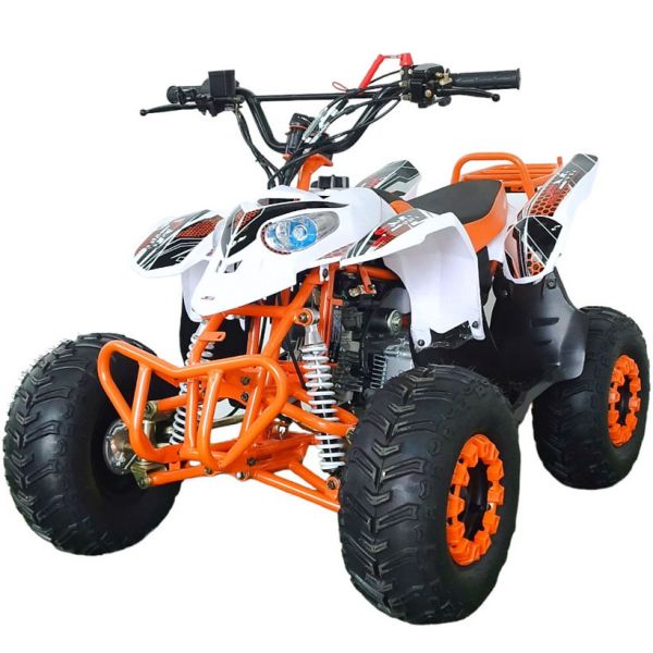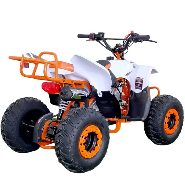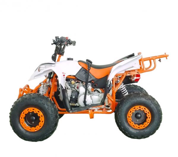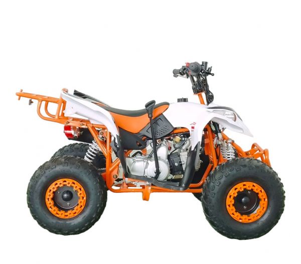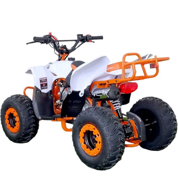 Motor 125cc 4 tiempos refrigerado por aire, potencia 7 CV, cambio automático con marcha atrás, arranque eléctrico, batería 3 amperios, altura del asiento 63 cm, frenos delanteros de tambor- trasero de disco hidráulico, neumáticos 16X8-7 Off road, llantas 7 pulgadas, transmisión por cadena, llave de contacto si, chasis reforzado, pegatinas si, mando a distancia si, herramienta si, carga máxima 120 kg, velocidad Máxima 55 Km/h, acelerador gatillo, peso total 83 kilos, tamaño 138 cm x 90cm x 80cm, caja 115cm x 67cm x 55 cm, edad recomendada a partir de 7 años, luz delantera y trasera, hombre al agua si, suspensión doble suspensión delantera por muelle y mono viga trasera, 2 años de garantía en condiciones de buen uso, no incluye roturas, motores de arranque, componentes eléctricos, ni componentes vulnerables, servicio técnico propio, ESTE PRODUCTO PRECISA DE MONTAJE.