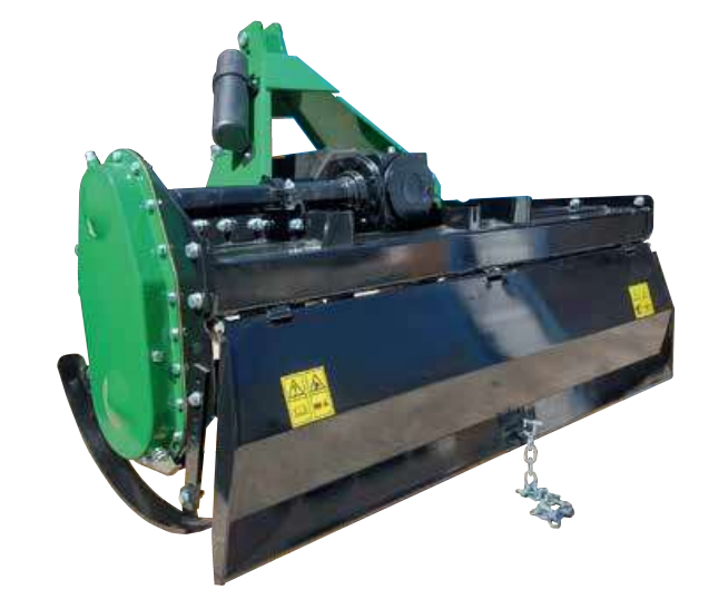 Equipo diseñado para la preparación de suelo en pequeñas superficies, caja de engranajes de hierro fundido de grafito, enganche unuversal a los 3 puntos, altura ajustable con los patines laterales, potencia mínima tractor 40 CV, número de cuchillas 36, peso 350 KG, profuncidad de trabajo 135 MM, dimensiones 168x84x104 MM, conexión por engranajes, garantía oficial VG AGRO, servicio técnico propio.